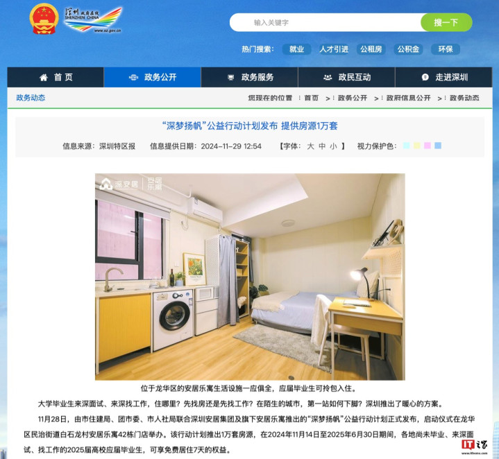 IT之家获悉,深圳于去年11月起推出“青年驿站”“深梦启航”“深梦扬帆”等“深梦”系列公益活动,为各地来深找工作的高校毕业生提供免费居住。